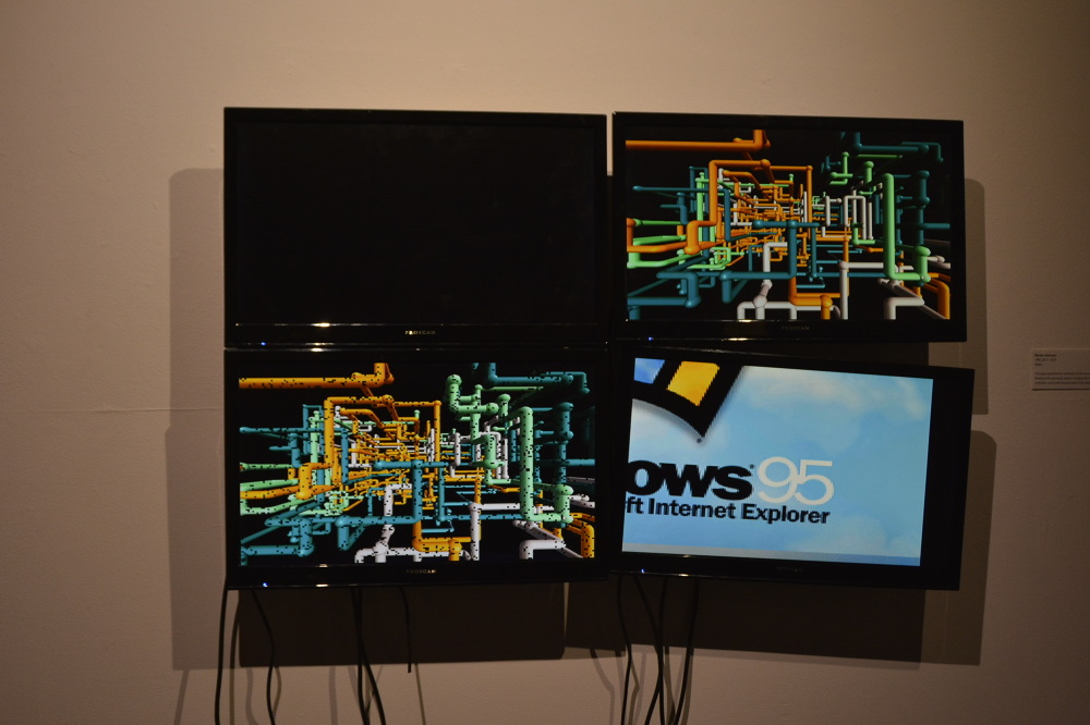 1995 is a sculptural glitch art installation that combines the beauty and frustration of the 1995 operating system Windows 95. The piece’s aesthetics and glitchy sounds are designed to trigger nostalgia and uneasiness for its viewers (especially those who experienced the operating system first hand).